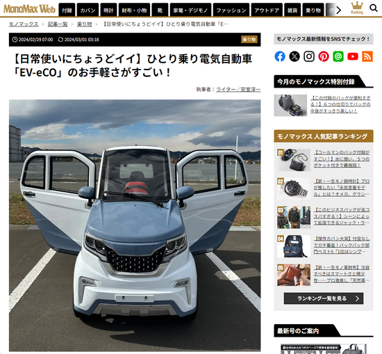 掲載のお知らせ/フル電動3輪ビークル Entre Cargo